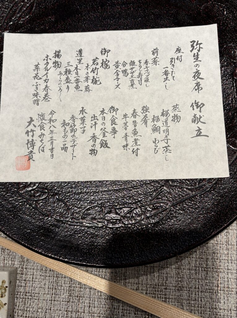 さぁ、「弥生の夜席」は、どんなお料理を食べさせていただけるか楽しみです。