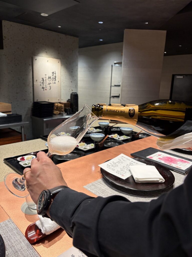 飲物は、お誕生日会につき、Sさんが、シャンパーニュのドラピエをオーダーして下さって、「お誕生日おめでとう」と乾杯をしました。
