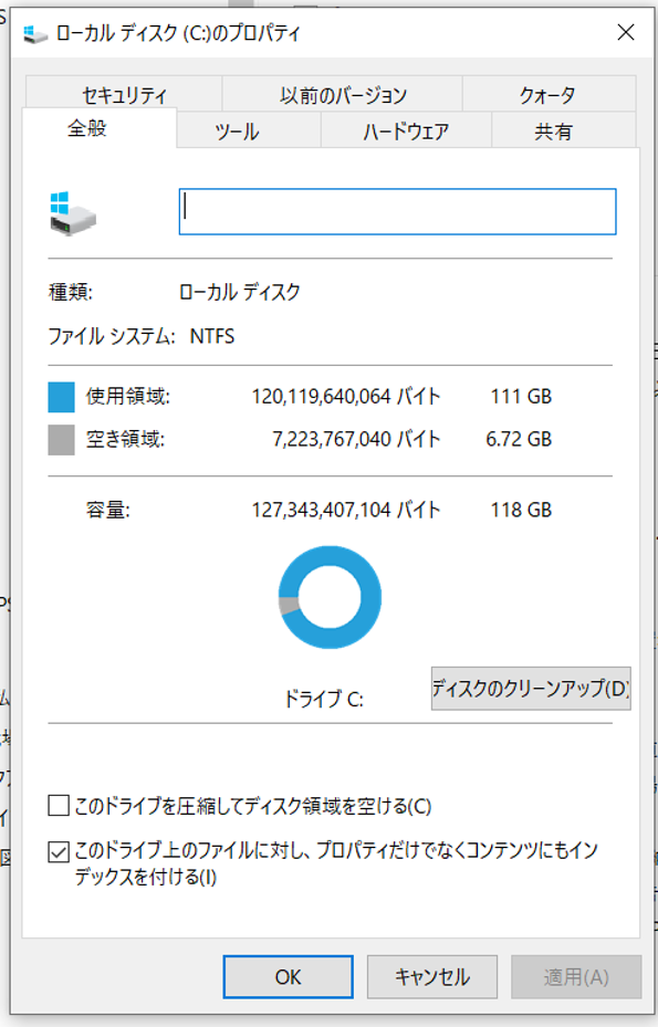 ハード領域の「C」を見たら、やる前と変わらず「122/127GB」で、空き容量は、最初と同じ5GBしかありませんでした。