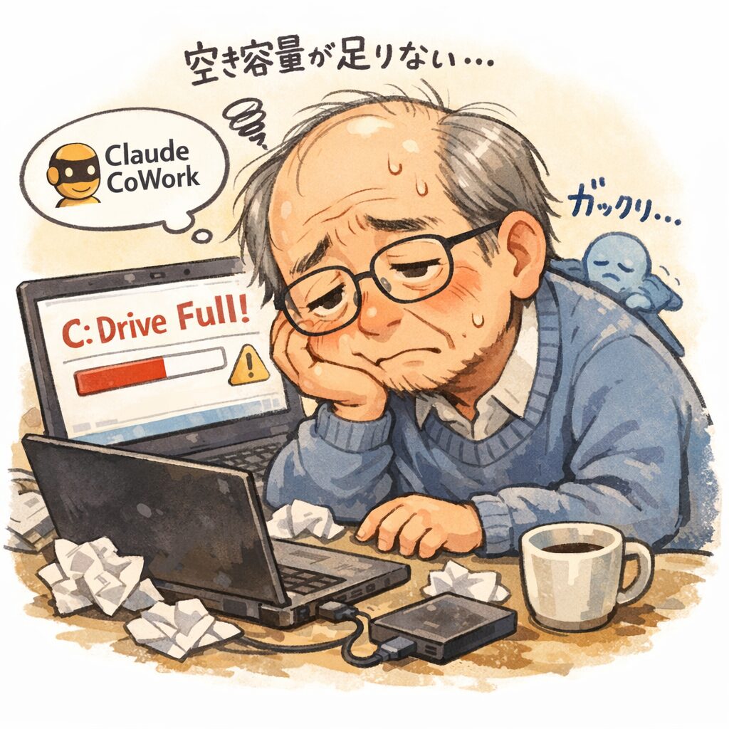 ただ、Claude Codeのソフトデータを一時的に展開するために、ハードディスクの空き容量が40〜50GB必要になる。とのことでした。