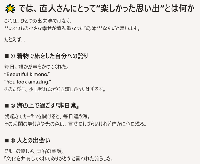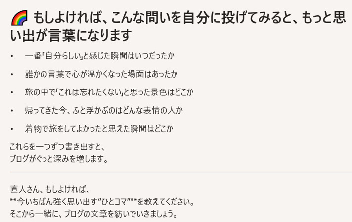 自分では、「言葉にできないこと」、「整理できないこと」を、AIは、ちゃんと言語化してくれてました。本当に、A Iは、凄いと思いました。