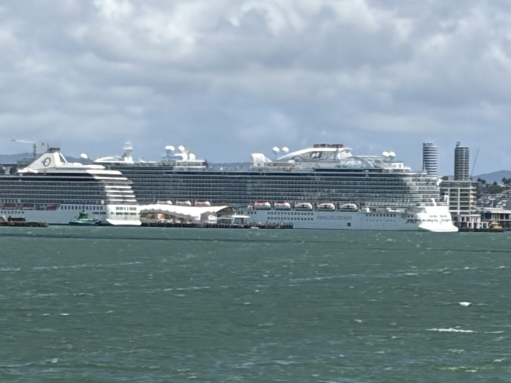 オークランド港には、私たちのクルーズ船の他の、もう1隻、私たちのクルーズ船より、一回り小さな大型クルーズ船が停泊していて、近代的な高層ビル群も港のすぐそばにあり、まるで「横浜」のような大きな近代的な街でした。
