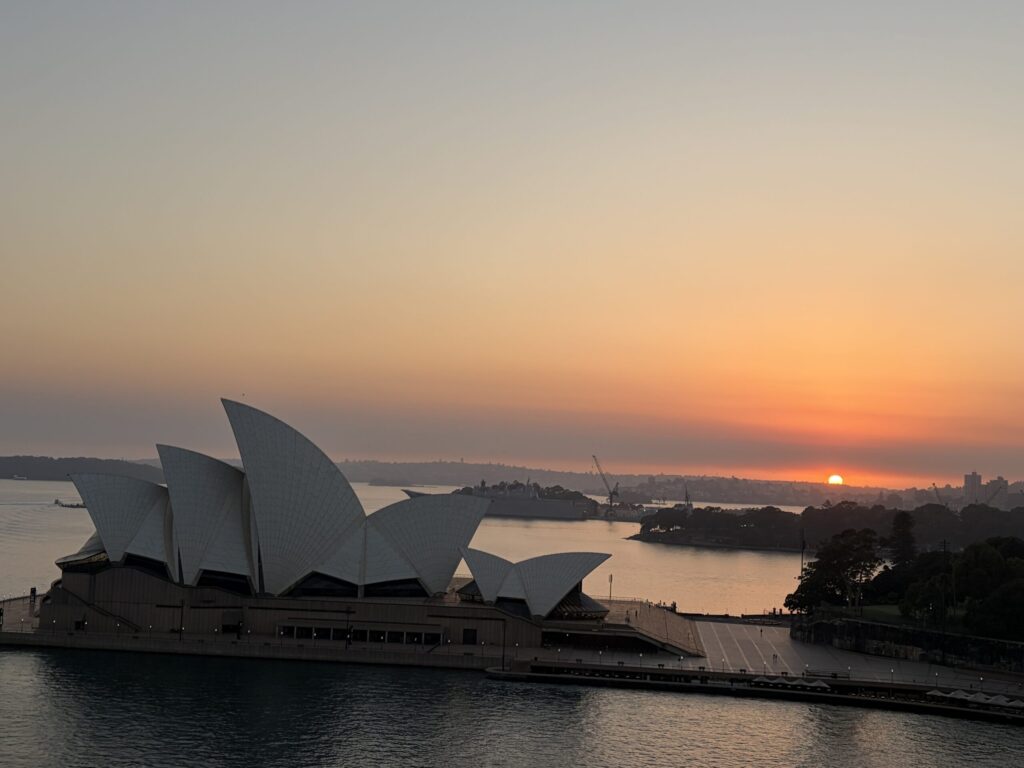 添乗員の新井さんから、「明日の朝、5時過ぎにシドニー港に入港します。その時の風景も特別ですので、ぜひ、早起きしてご覧ください。」なんて、前日の夕食のときに説明がありました。
