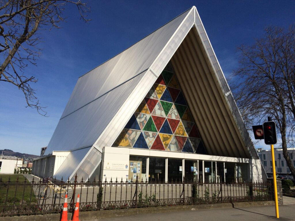 2011年の大地震で倒壊した大聖堂の代替として建てられた建物で、建築素材に“紙の筒”が使われていることで世界的に有名。