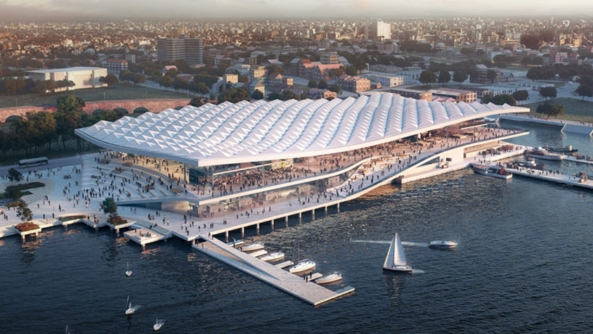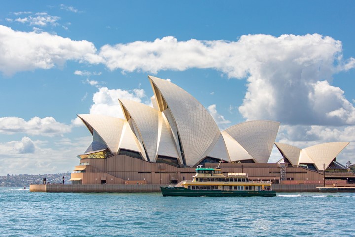 シドニー湾に浮かぶように建つ オペラハウス は、