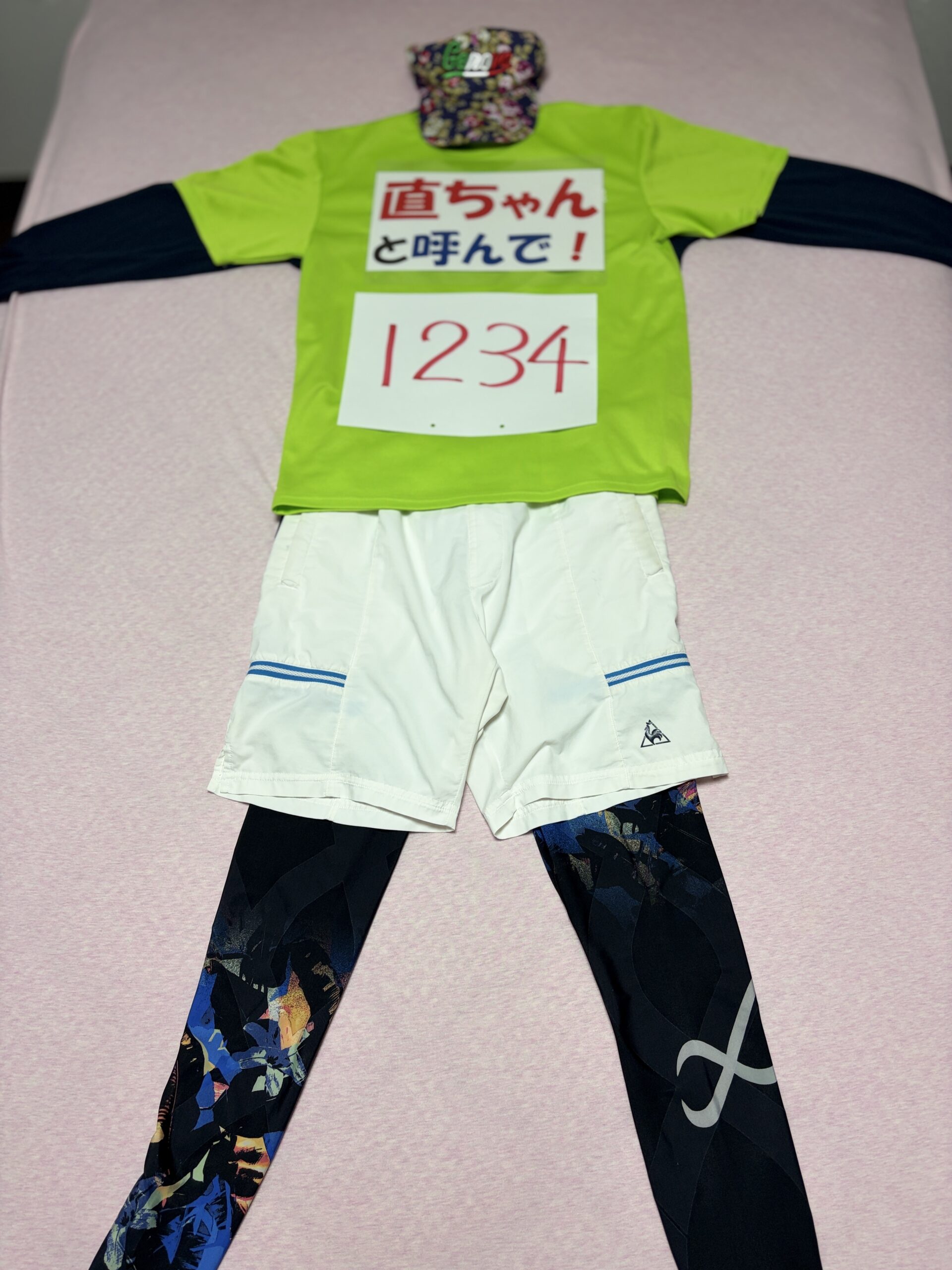 Tシャツは、山中湖1周マラソンでもらった、黄緑色のめだの蛍光色のやつ。