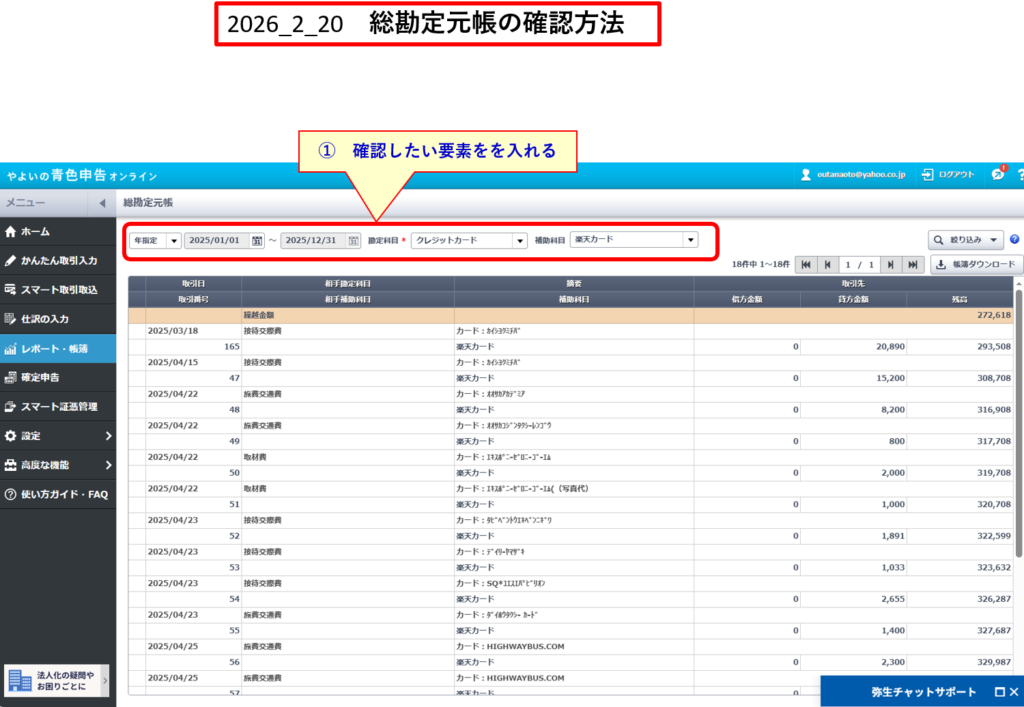⑥ 総勘定元帳の確認方法