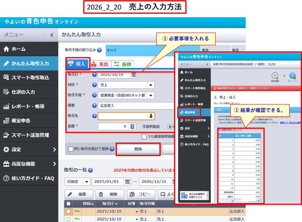 ⑤ 売上の入力方法
