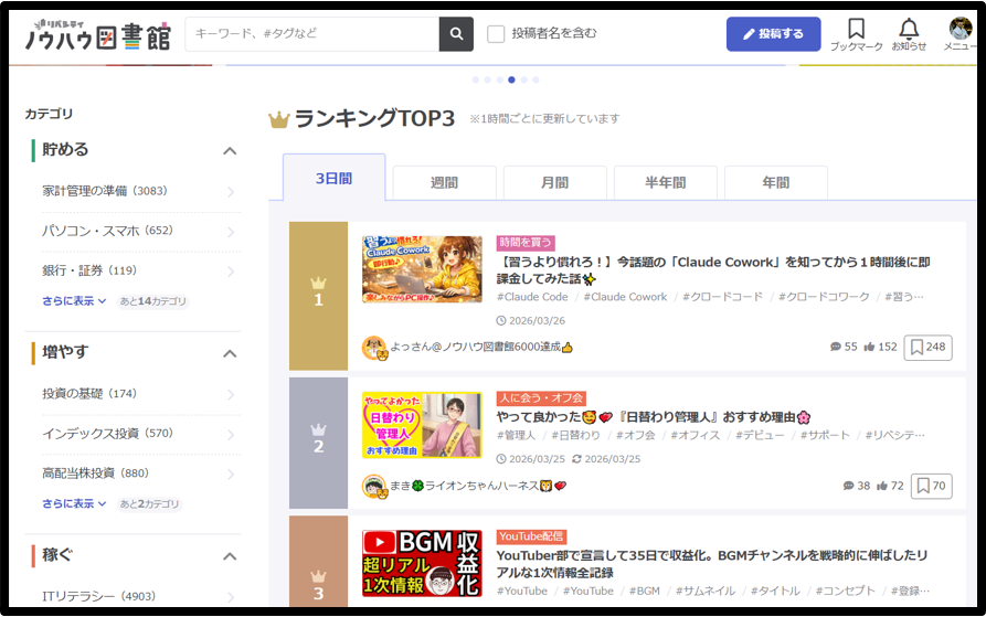 また、今回作った資料は、リベシティ内の「ノウハウ図書館」(リベシティの会員が、自分の経験などを通じて得たノウハウを「会員のみんなに役に立つ情報」として、投稿し、それらのノウハウ記事は、会員ならだれでも閲覧できるシステムです。)に送ろうと思ってます。