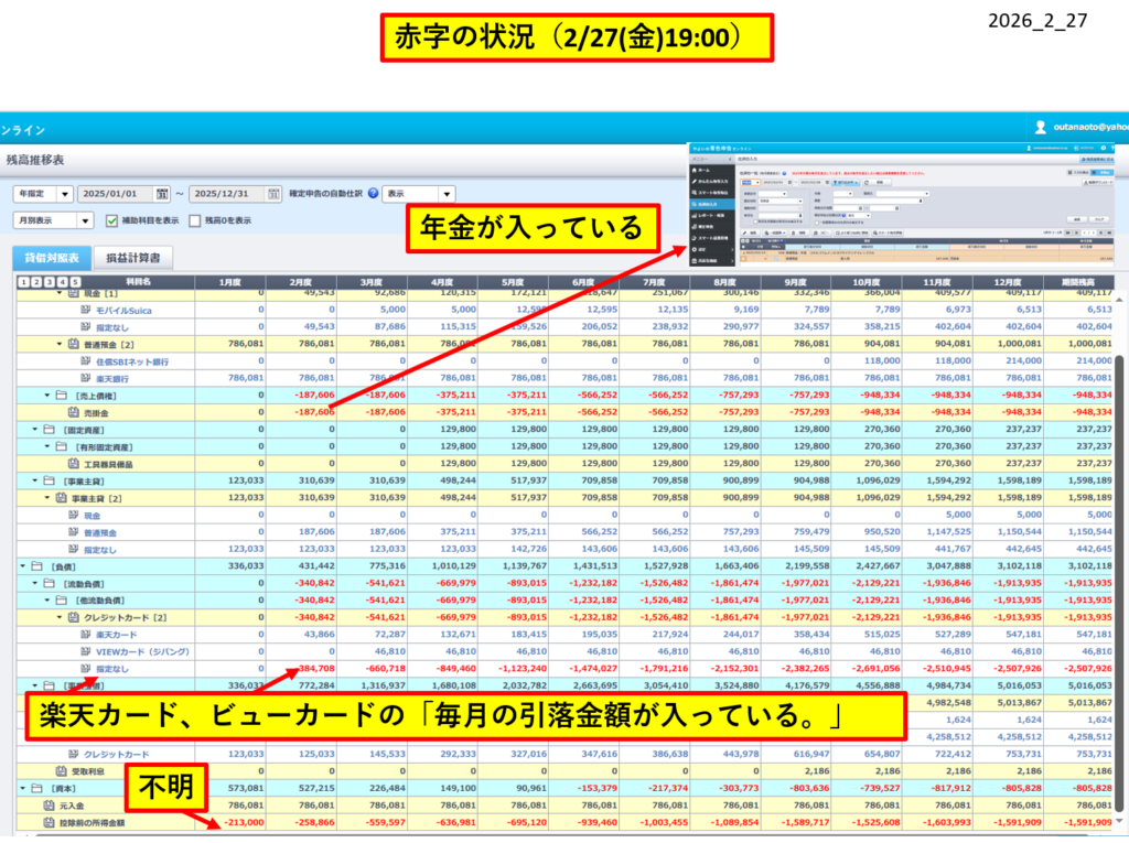 その後、「残高推移表」の、「その他の赤字の数字」を確認しましたが、内容を見て、明らかに違う項目の数字が入っていることがわかりましたので、この処置は、3/2のオペレーターの方にお任せすることに決めました。