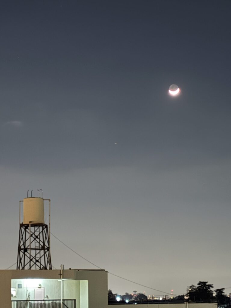 「あれ~、こんな受け口型の三日月、みたことないなぁ・・・」なんて思いながら、カーテンを閉めました。