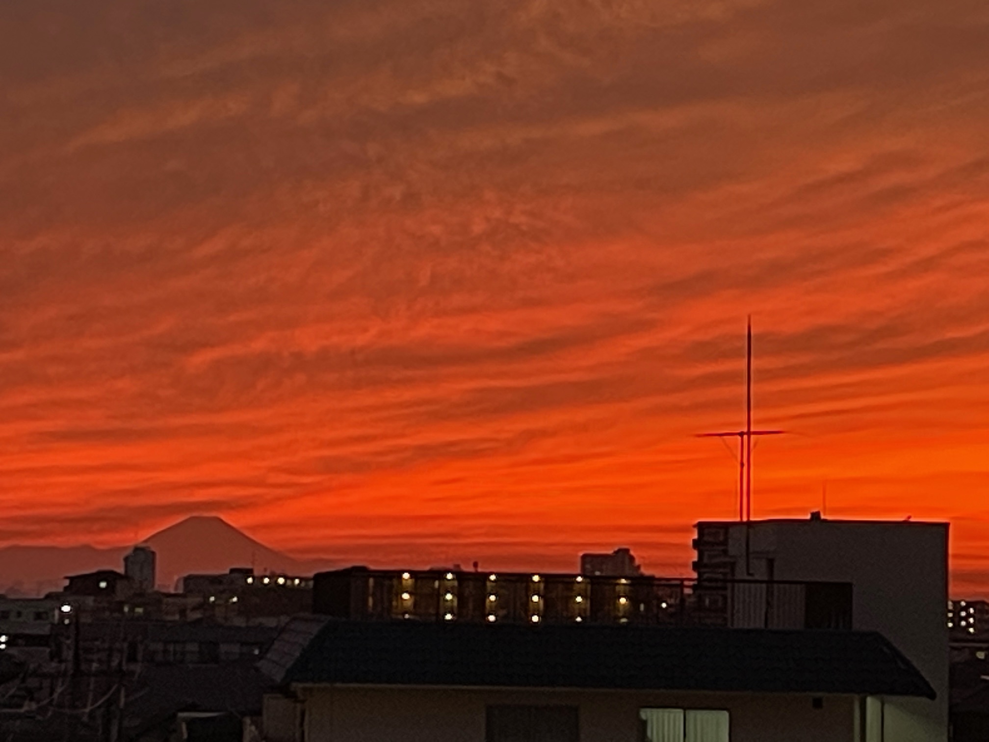 「あっ、これは、キレイな夕焼けが見られるかも?」と、すぐにベランダ側のカーテンを開けたところ、オレンジ色の夕焼けが広がっていました。