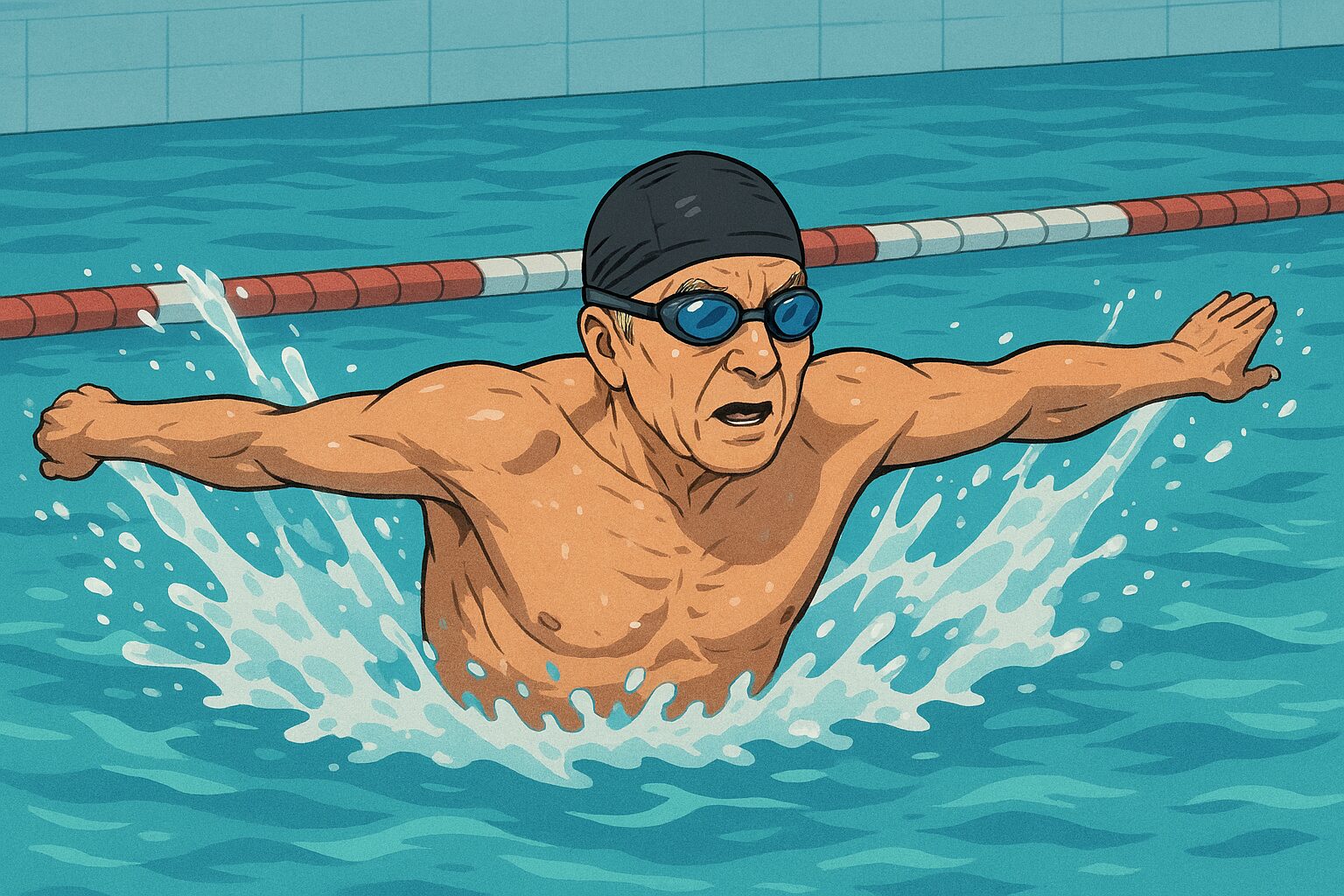 今も、ゼイゼイ言いながら、高校生の部活みたいな水泳練習を続けていますからね。