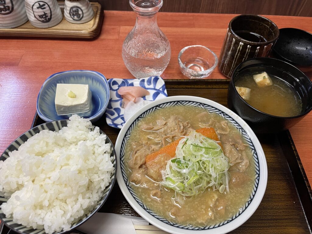 とりあえず、カウンターの中の大将に聞いて、「お酒」と、「モツ煮込み定食」を頼みました。