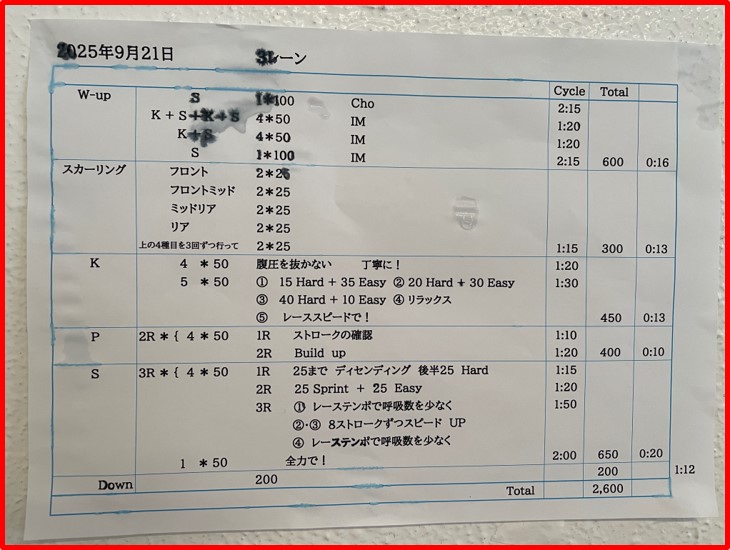 日曜日は、マスターズの水泳練習会に、出るために、行きは、9:30に家を出て、40分ママチャリをこいで、汗だくになって柏洋プールに行って、インターバルトレーニングのメニュー+ダウンスイムで、3,000m泳いで、