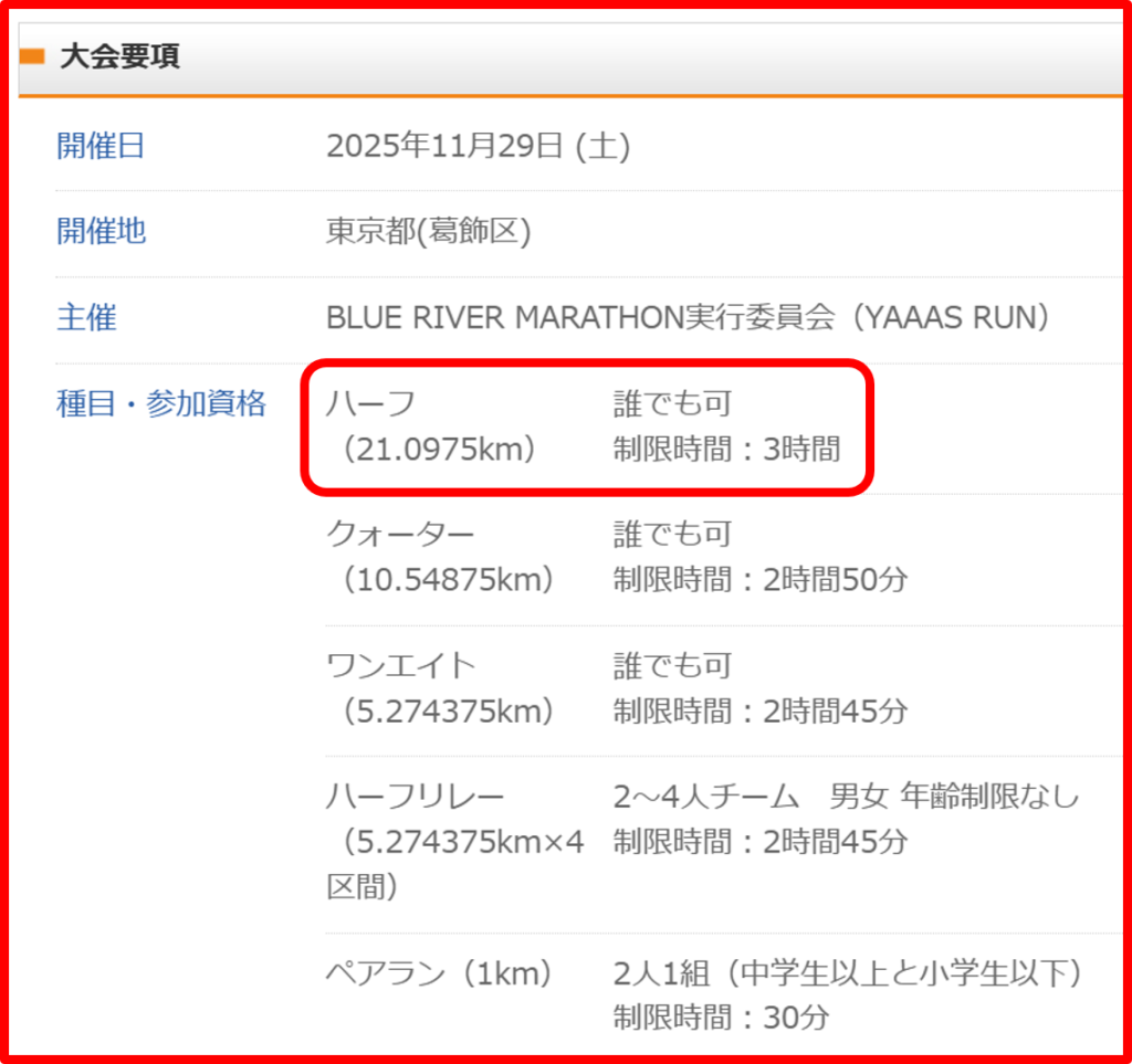 ただ、今年の11/29(土)には、BLUE RIVER MARATHON 2025 in TOKYO -CHARITY RUN- (ブルーリバーマラソン 2025 イン トウキョウ -チャリティーラン-)