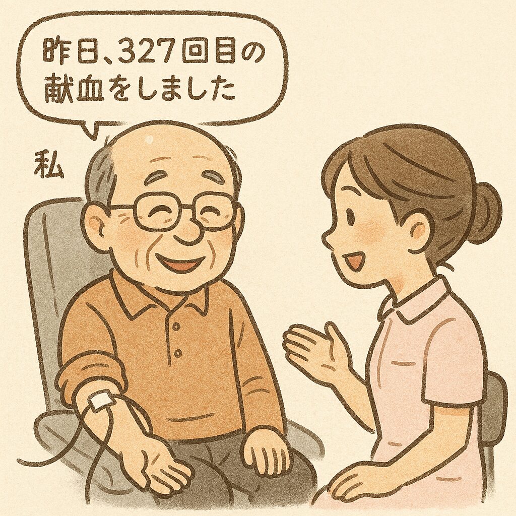 昨日、327回目の献血に行ってきました。献血が終わってから、いつものように、リベシティ内の献血チャットに次の投稿をしました。