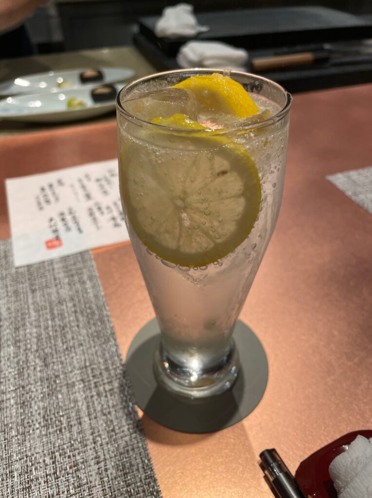 本日のディナーのお相手は、いつもの美の伝道師のSさんです。まずは、二人とも「こだわりレモンサワー」で、乾杯!
