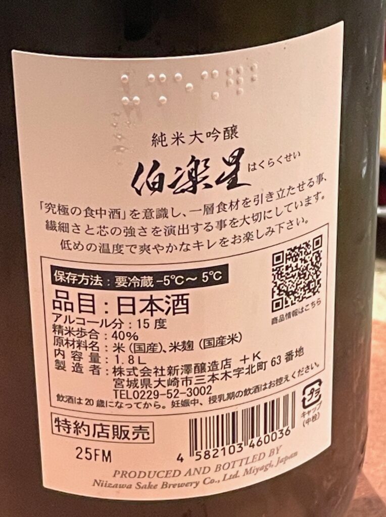 でも、お値段は、「伯楽星」の方が2倍の金額なんですよね。このお値段の違いほど、味が違うかは、分かりませんでした・・・
