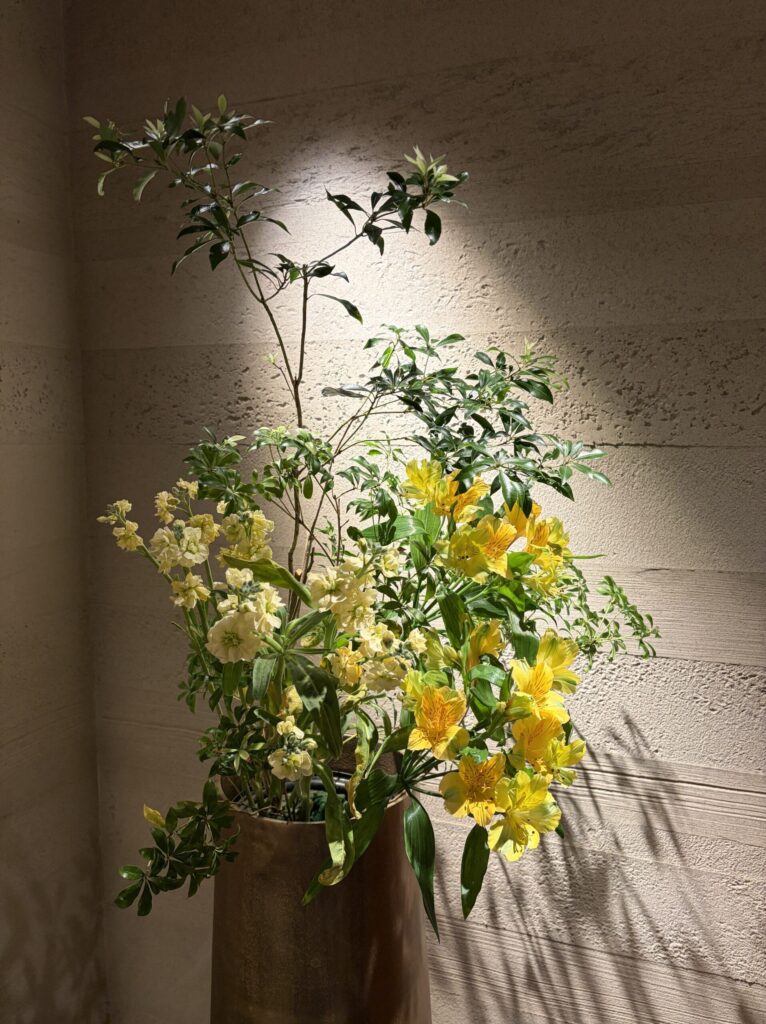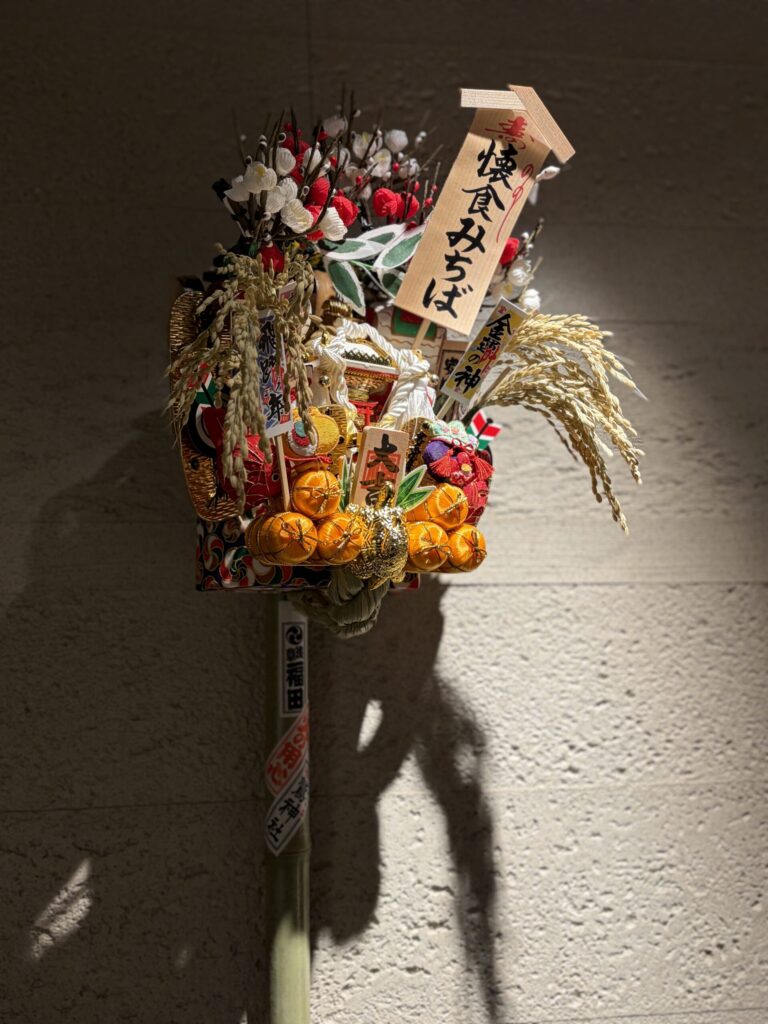 お店に入って、ハットや羽織を預けて、お店のみなさんにご挨拶して、その後、お店のお花や、縁起物の熊手が飾ってありましたので、パチリ。