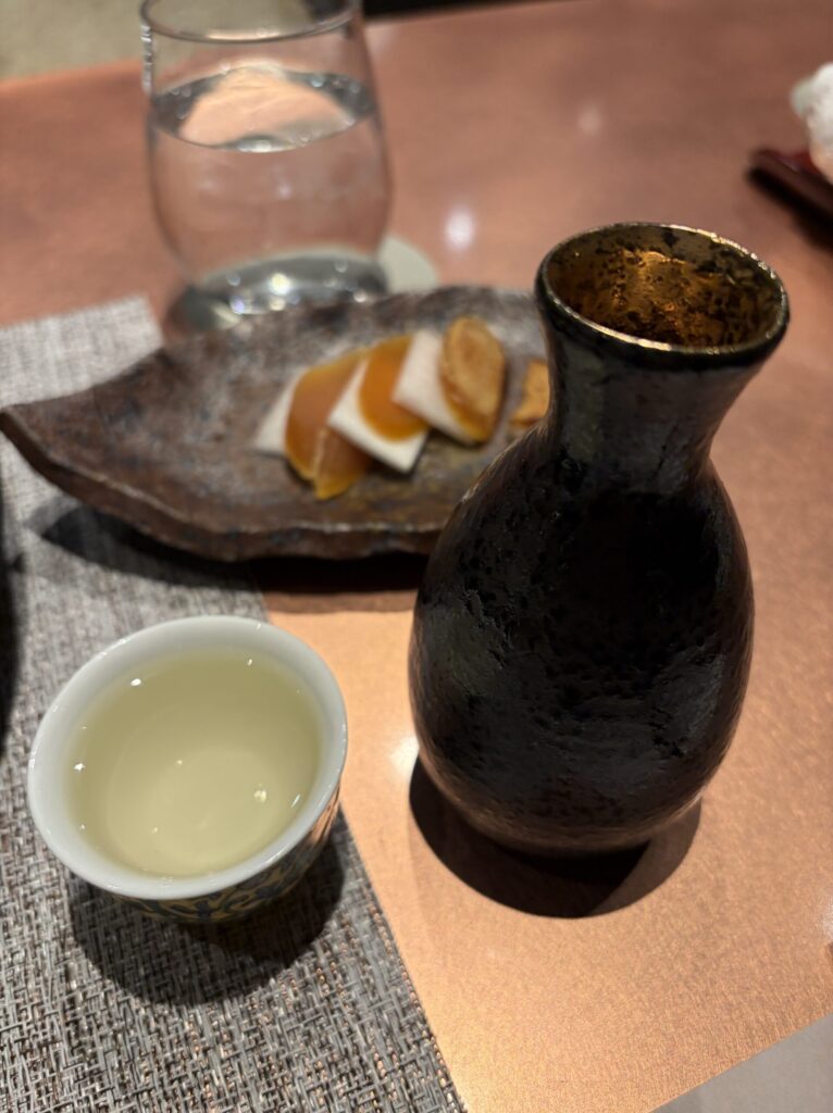 もう、この段階でレモンサワーを飲みほしちゃいましたので、「からすみ」に合うもの・・・といえば、やっぱり熱燗ですよね。兵庫のお酒の「都美人」を頂きました。