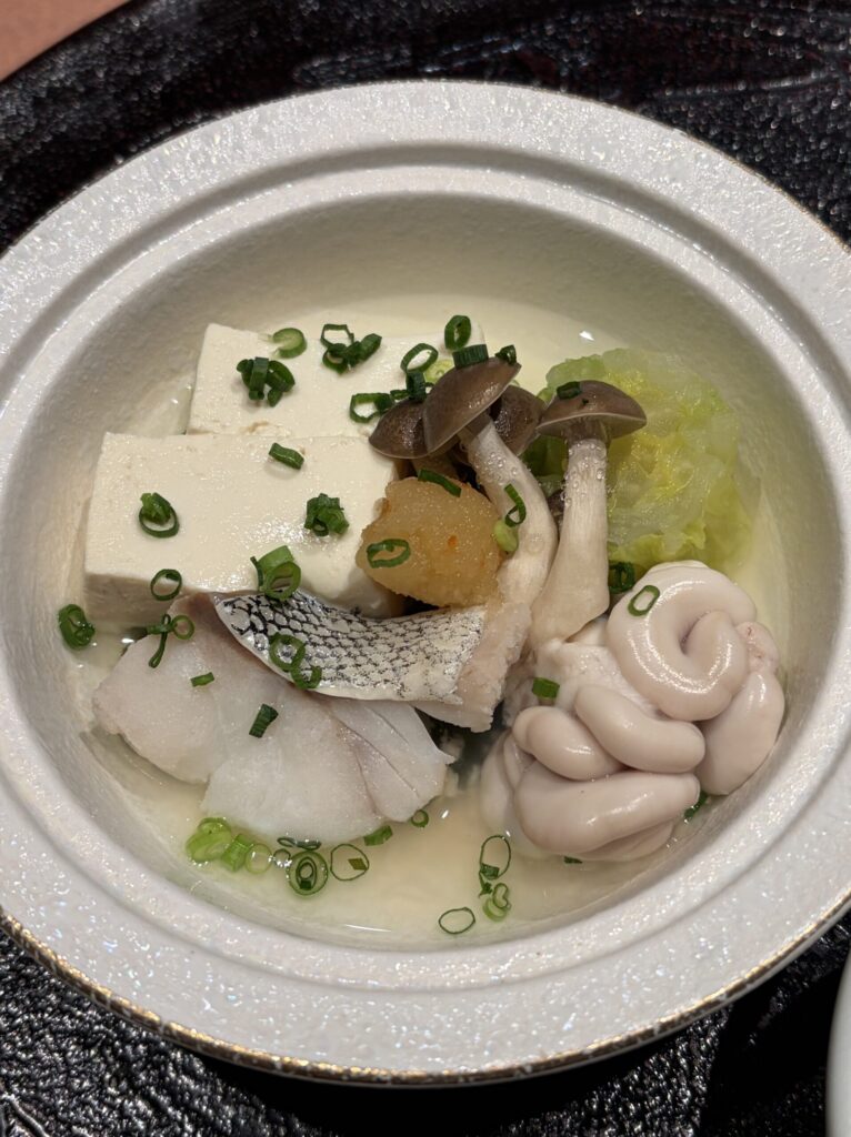 今回は、この後に、献立に載っていない【健菜】が出されました。これも手の込んだ1品で、とても美味しかったです。