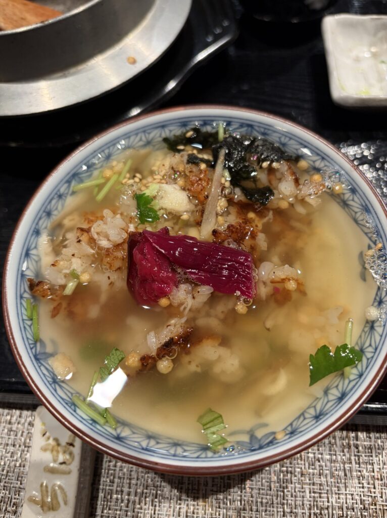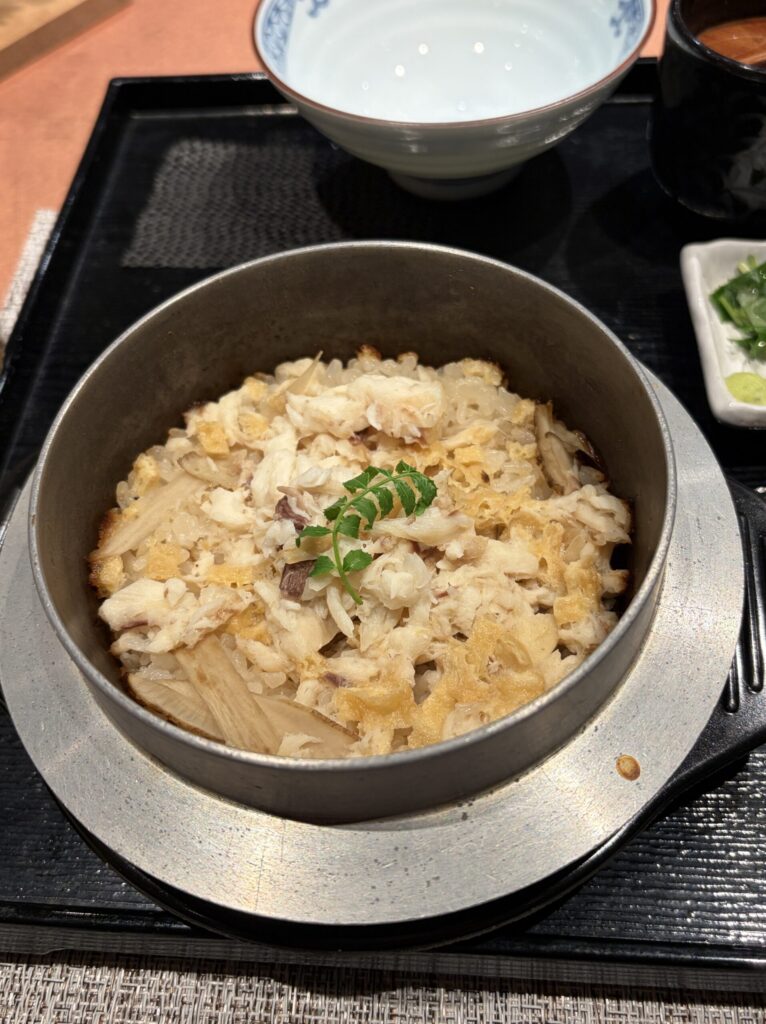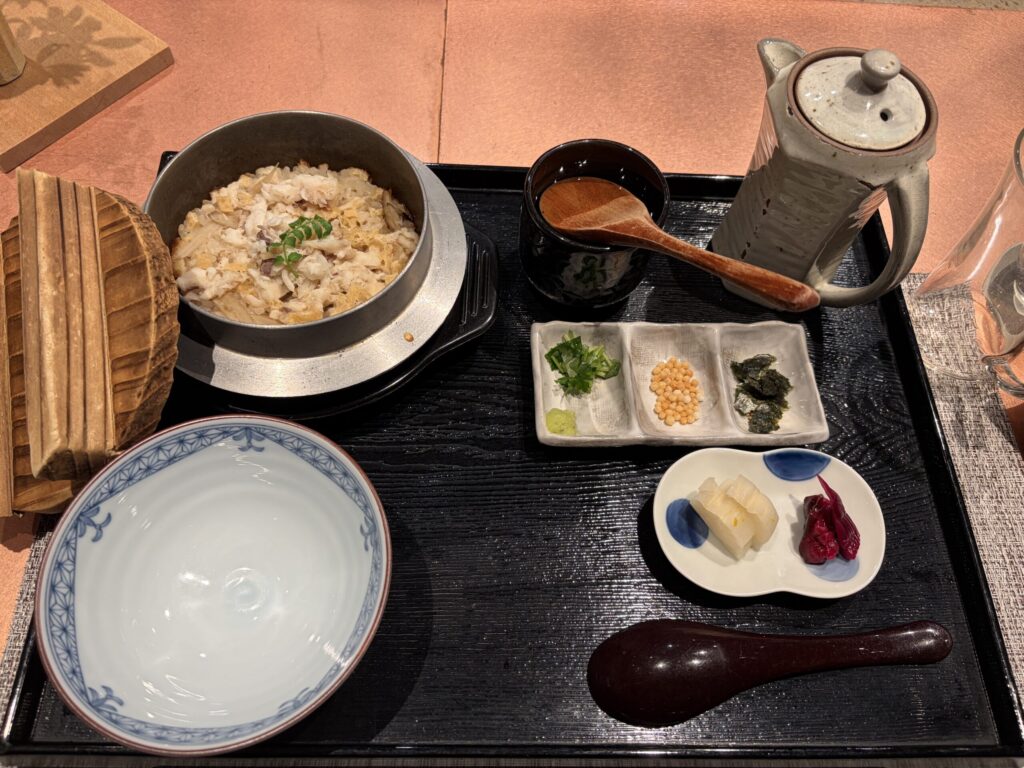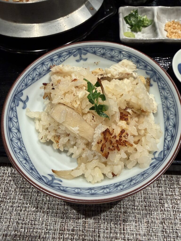 【御食事】本日は、鯛釜めしでした。おこげもあって、そのまま食べても美味しいし、お茶漬けにしたら、また、美味しくて、本当にごはんっていろいろな食べ方が出来て、すごいポテンシャルの高い植物だと思いました。