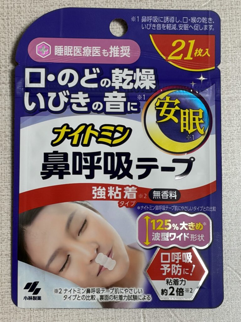 ただ、少し鼻が詰まってる感じがしましたので、今度は、鼻腔を広げるテープも買って、両方使ってみようとと思います。