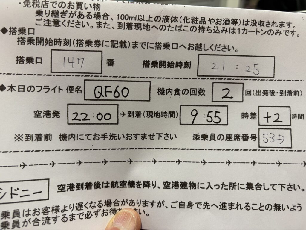 いよいよ、今夜(1/16金)22時に、カンタス航空0060便でオーストラリアのシドニー空港に向けて出発します。