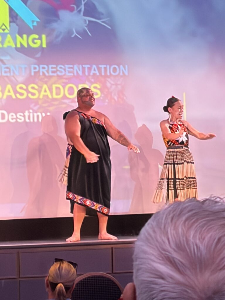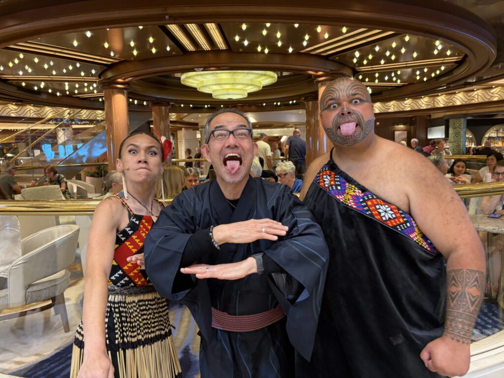 「船内案内」の後、メインホールの「ザ・ザ・ピアッツァ」で、ハカの紹介イベントがありましたので、それを見て、記念写真を撮りました。