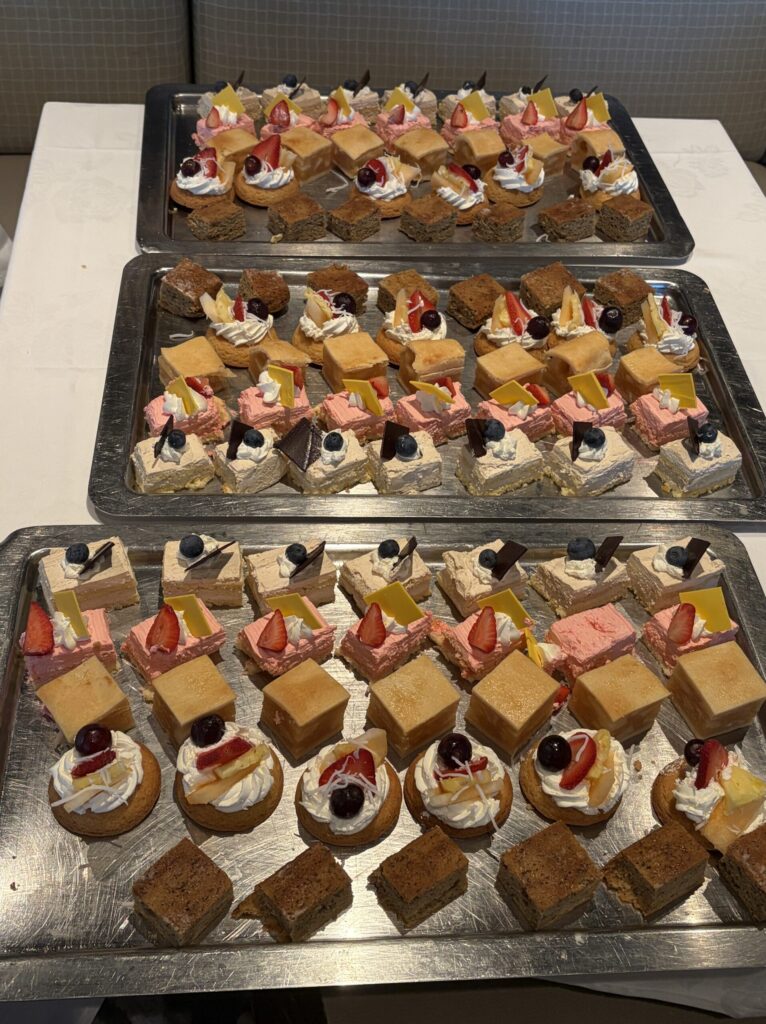 その後は、15時からアフタヌーンティーに行きました。こんなプチケーキが、頼み放題でしたので、ケーキ3種類と、紅茶を頂きました。