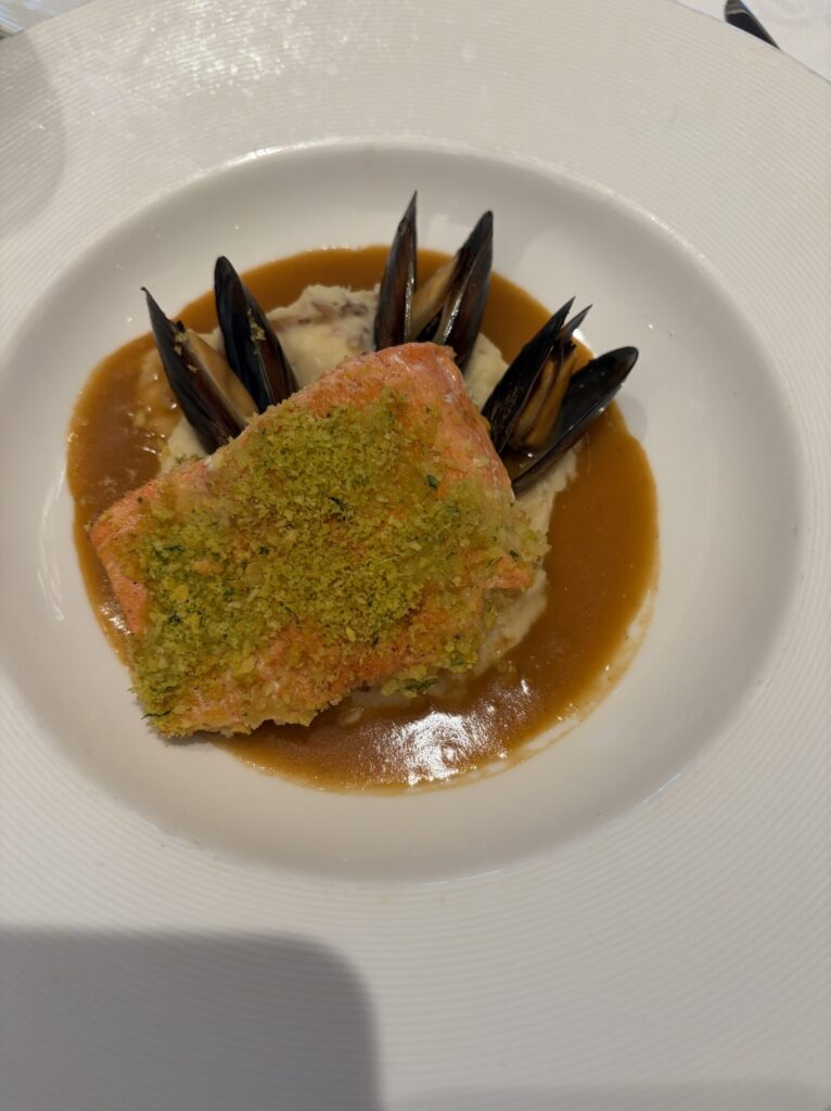 お食事も美味しかったです。特に、レタスにパルミジャーノレッジャーノの削ったのが、シンプルで美味しかったです。あと、ムール貝と、シャケフライもgoodでした。
