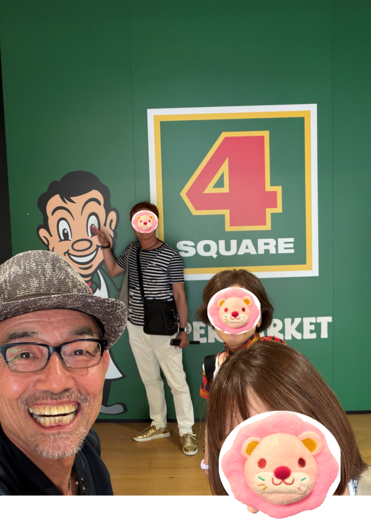 その後、ニュージーランドのスーパーのチェーン店の「4 SQUARE」(このおじさんの似顔絵が目印)に行きました。