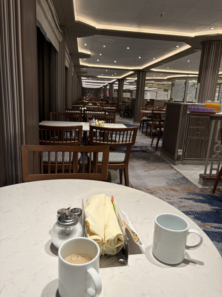 とりあえず、16階の食堂デッキに降りて、目覚ましのコーヒーを飲みました。