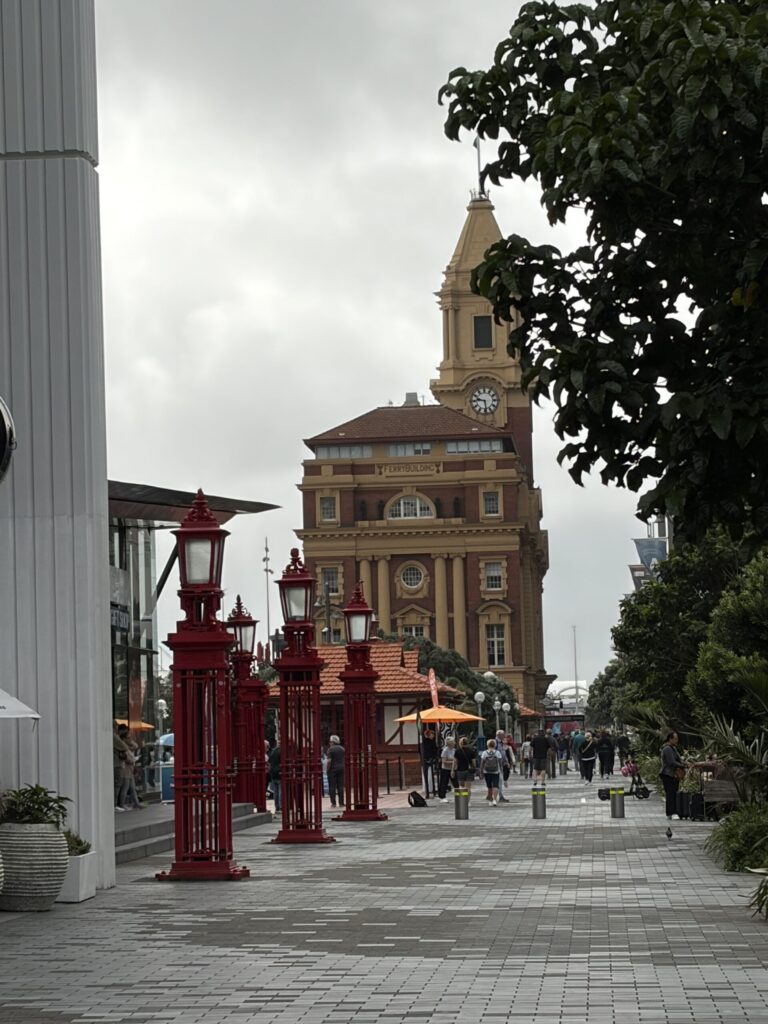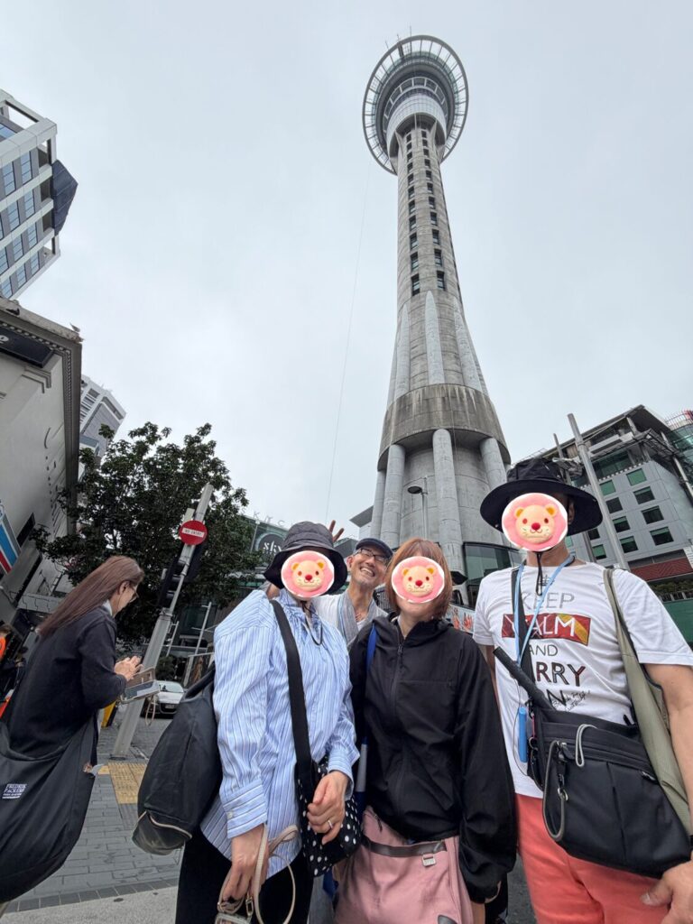 正面にはスカイタワーがぼんやりと雲の中に見えます。これがニュージーランドで初めて見る景色です。