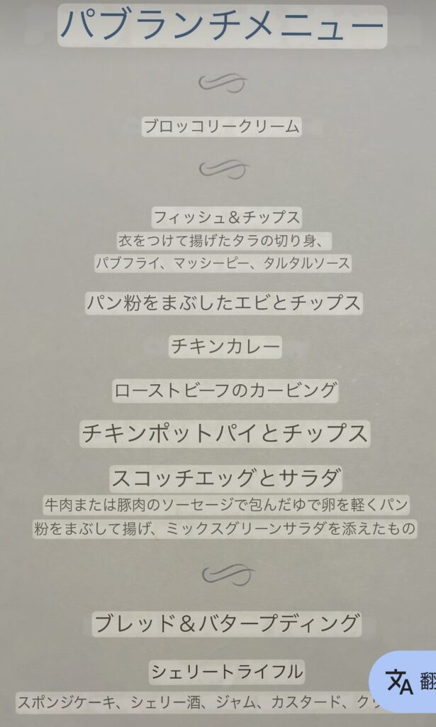 その後、船内をぶらぶらしてたら、お昼の時間になりましたので、友だちとレストランに行って、メニューをGoogle翻訳で訳して、オーダーして、お昼ご飯を食べて、
