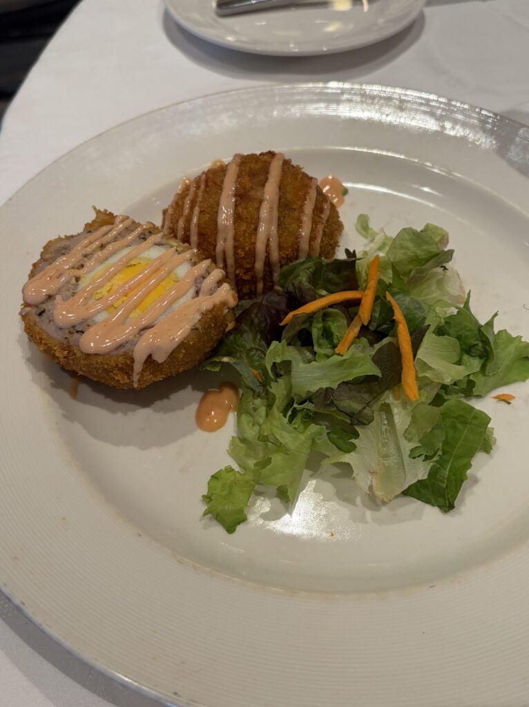 それで、仕方なく、また戻ってビュッフェに戻って、小皿を取りに行きました。舌切り雀の欲張りじいさんと同じように、大きなお皿にしたのが間違いでした。