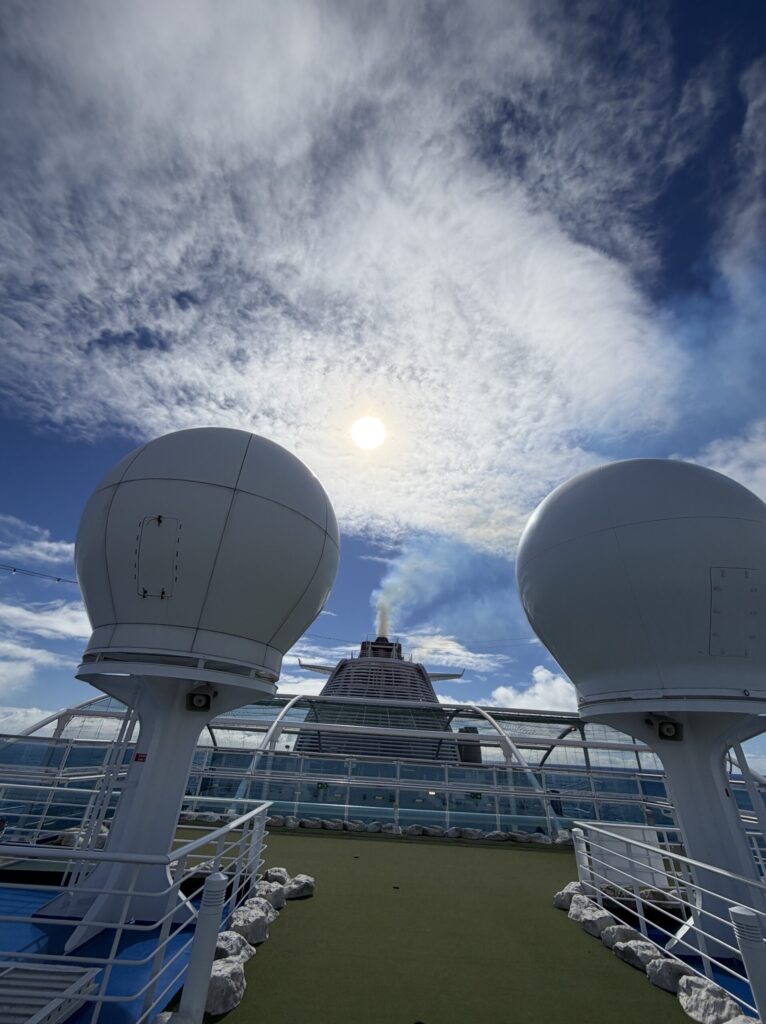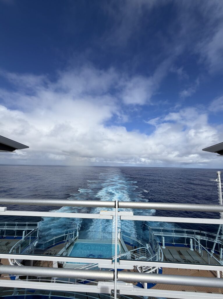 けたたましく、目覚ましが鳴って飛び起きたら、もう、朝の8時でした。昨日は、11時半ぐらいには寝たので、よく寝たなぁと思いました。その後、着替えて、船上を軽くお散歩をして朝食を取りました。