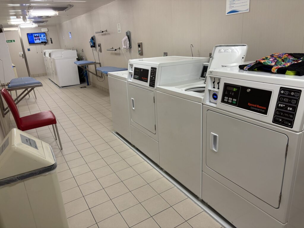 ランドリー室は、居住室のある8個階の全てにあります。私たちは、11階のA(アロハ)階ですので、11階の後部方向にあるランドリーでお洗濯をしました。