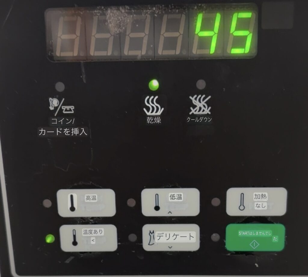 洗剤や、柔軟剤は、見当たらないので、おそらく自動投入だろうからと、「スタート」ボタンを押して45分。