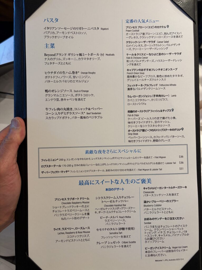 乗船3日目も、終日航海日で、ドレスコードは、「フォーマル」です。(時差修正+1時間)