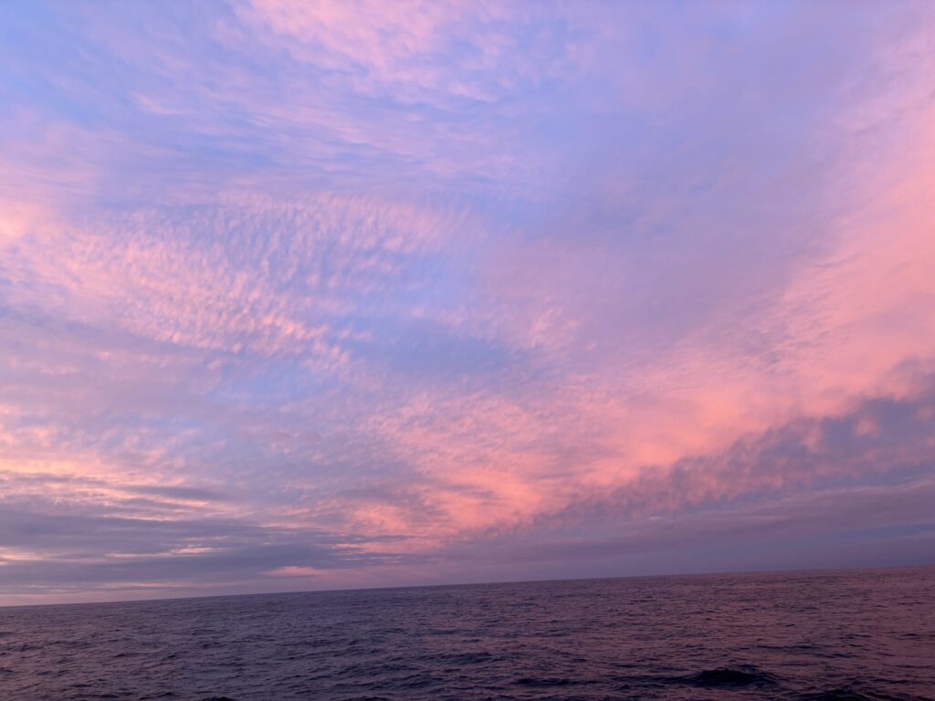 今日の海は穏やかで、見渡す限り地平線まで見えます。白波も立ってないので、船の揺れもありません。