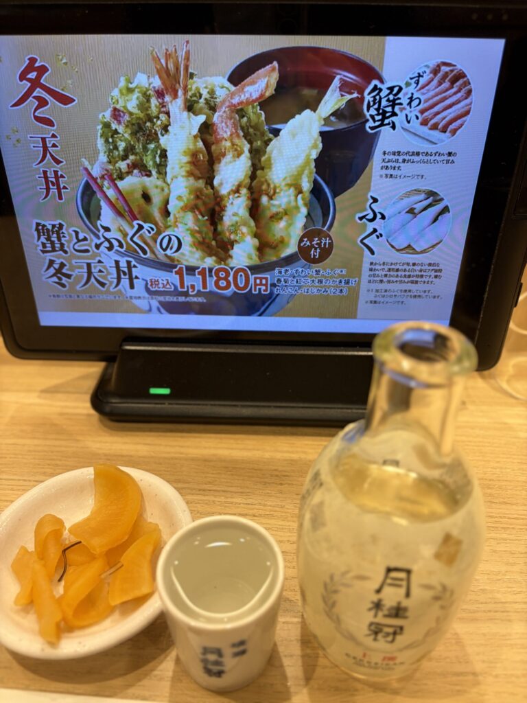 なんて妄想を膨らませて、昨夜も、てんやで「熱燗の月桂冠」と、「蟹とふぐの冬天丼」をいただいてました…